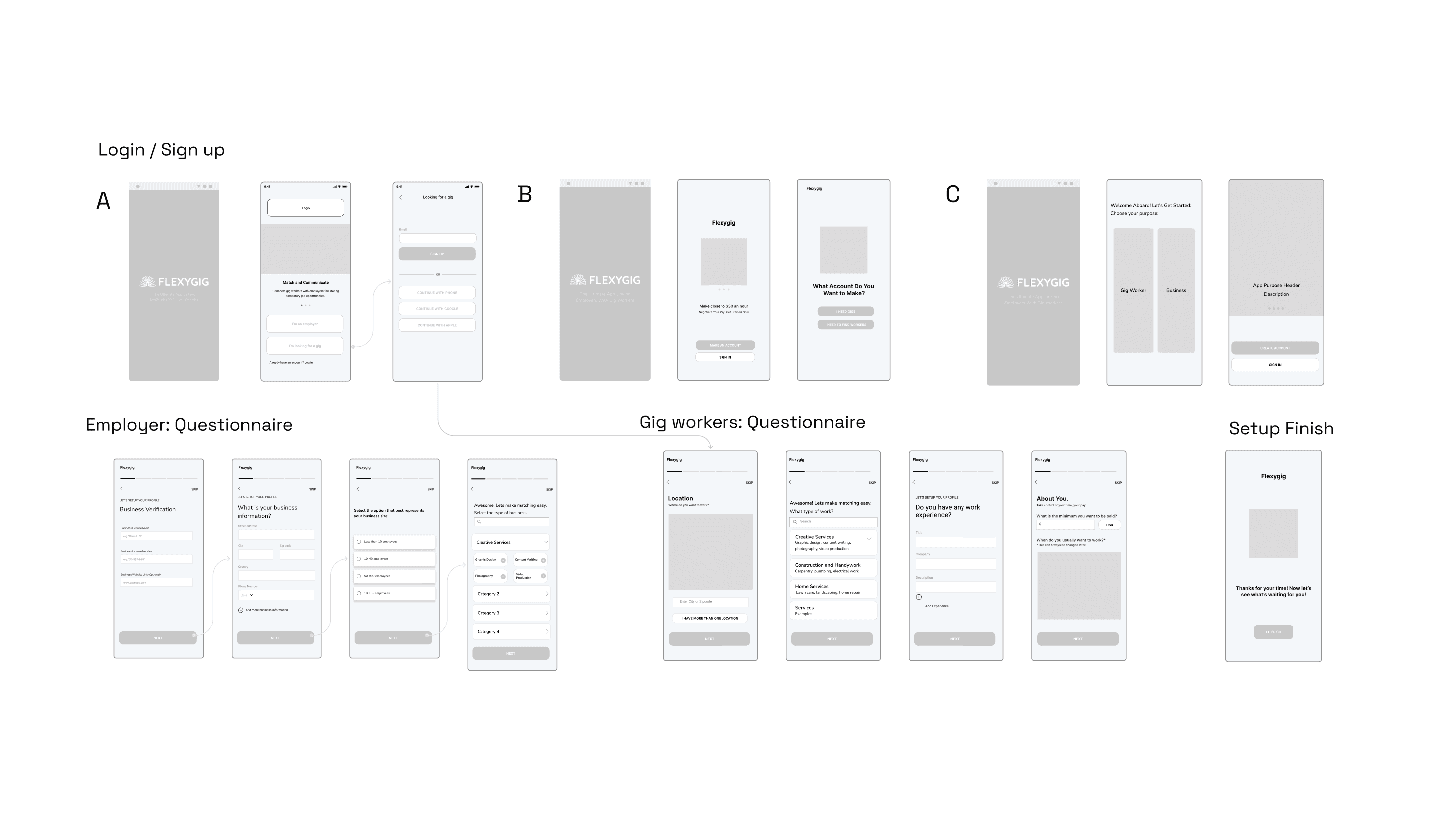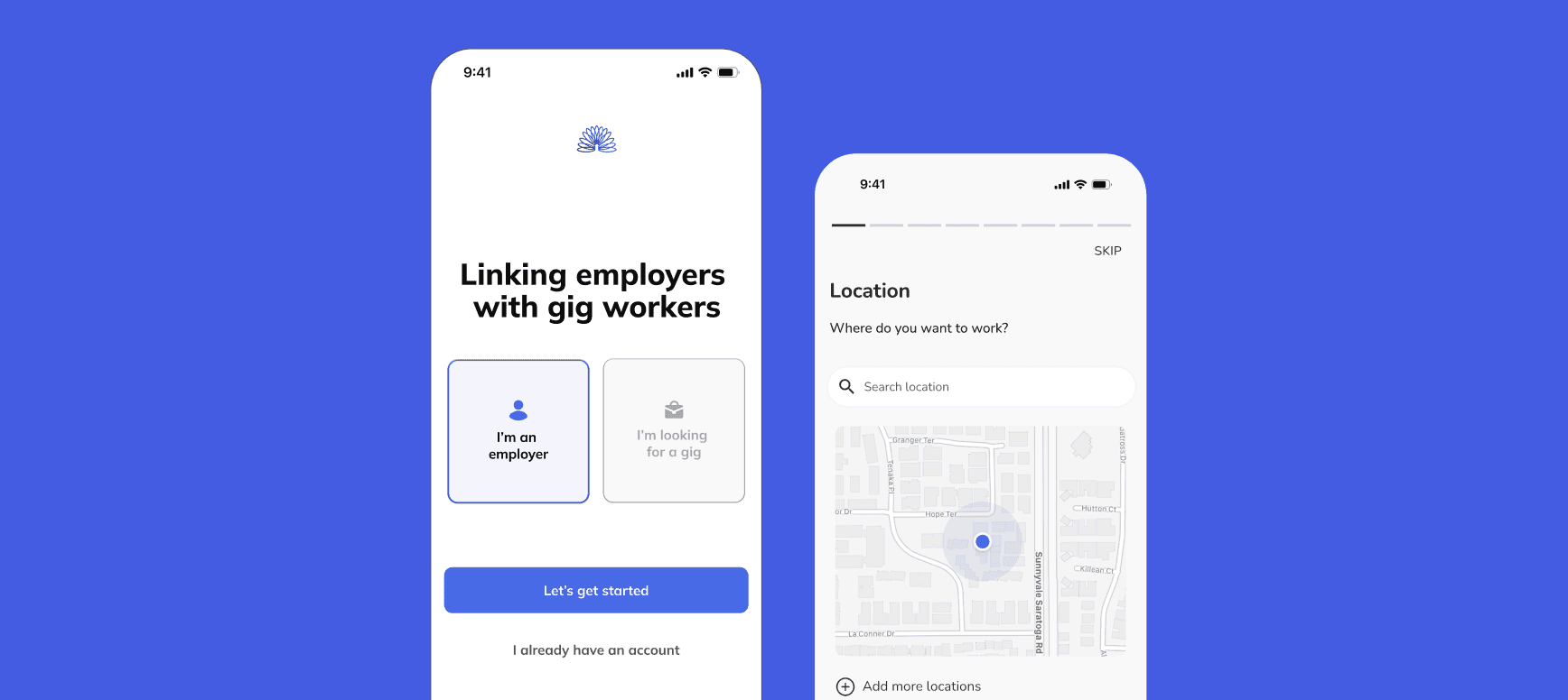 Two user flows for gig workers and employees in one app.